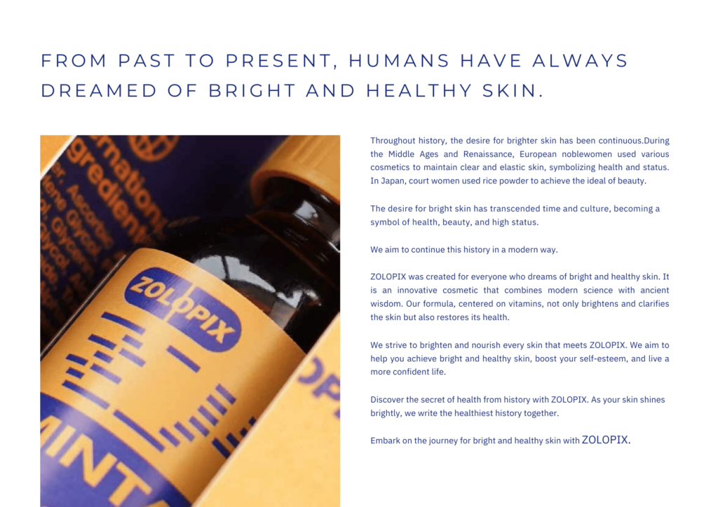 ZOLOPIX is a modern skincare brand dedicated to achieving brighter and healthier skin for all. Rooted in a combination of historical beauty practices and cutting-edge science, ZOLOPIX products are designed with a focus on powerful antioxidants, primarily Vitamin C, to combat free radicals, improve skin health, and enhance natural radiance. The brand emphasizes ethical production, high-quality ingredients sourced globally, and innovative technologies to deliver safe, effective results.