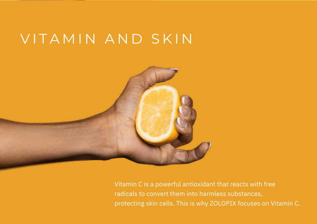 Free radicals are unstable molecules that damage skin cells, accelerating aging and causing inflammation. ZOLOPIX uses antioxidants, such as Vitamin C, to neutralize free radicals and protect skin health.